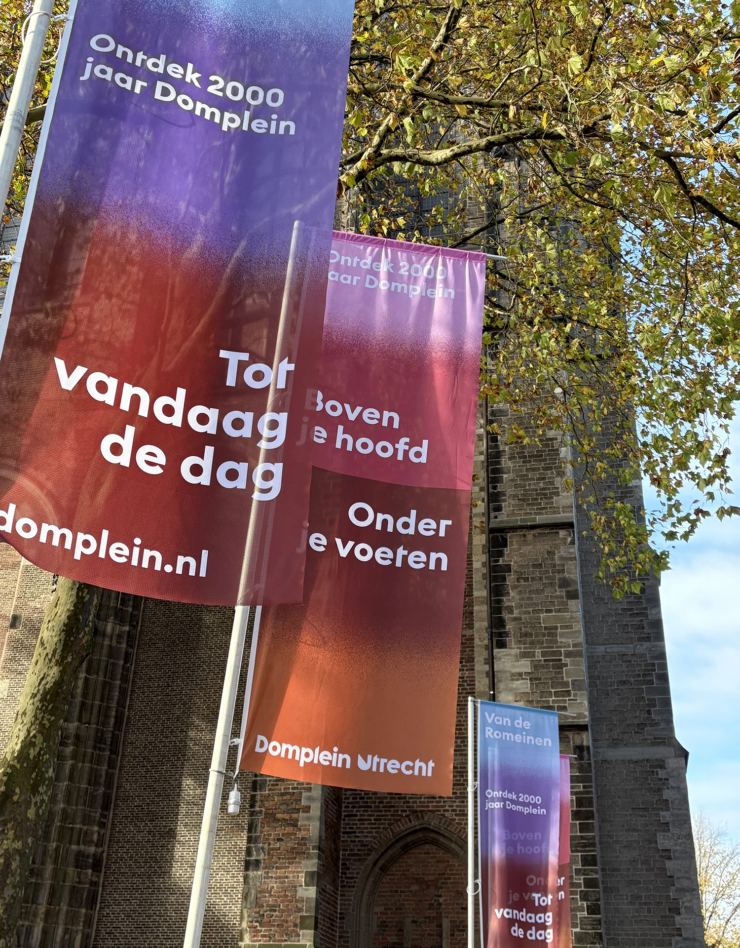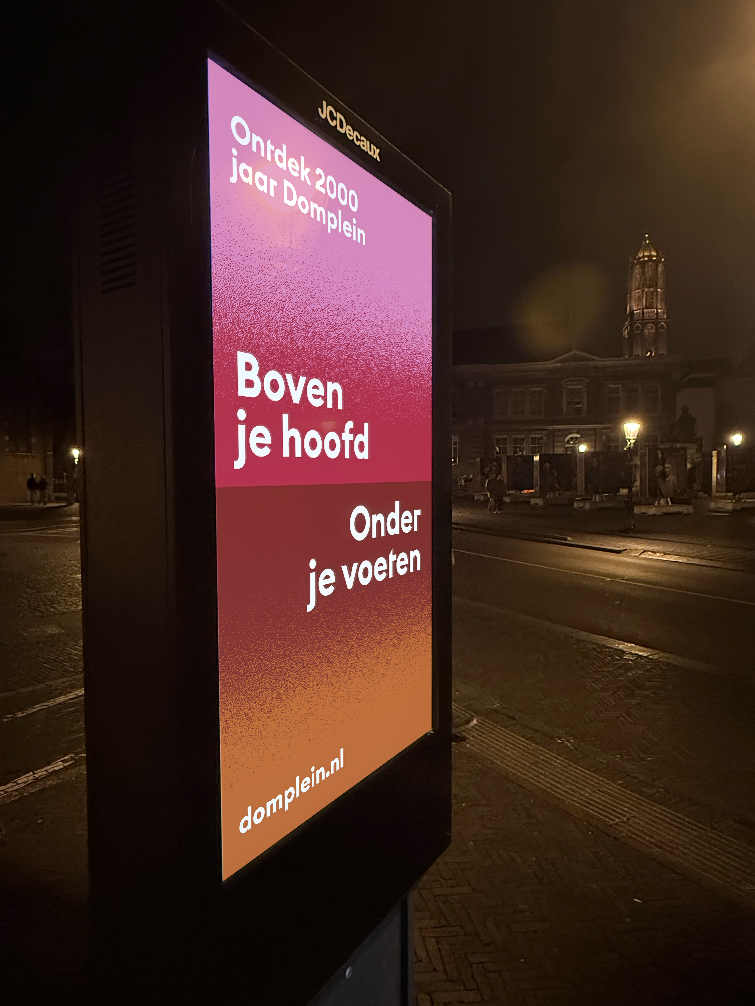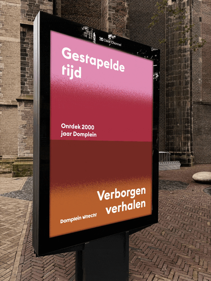 Van de Romeinen tot vandaag de dag. Laag op laag, boven en ondergronds. Om de de inhoudelijke gemeenschappelijke waarde van het Domplein naar voren te laten komen zijn deze lagen vertaald naar een visuele stijl.